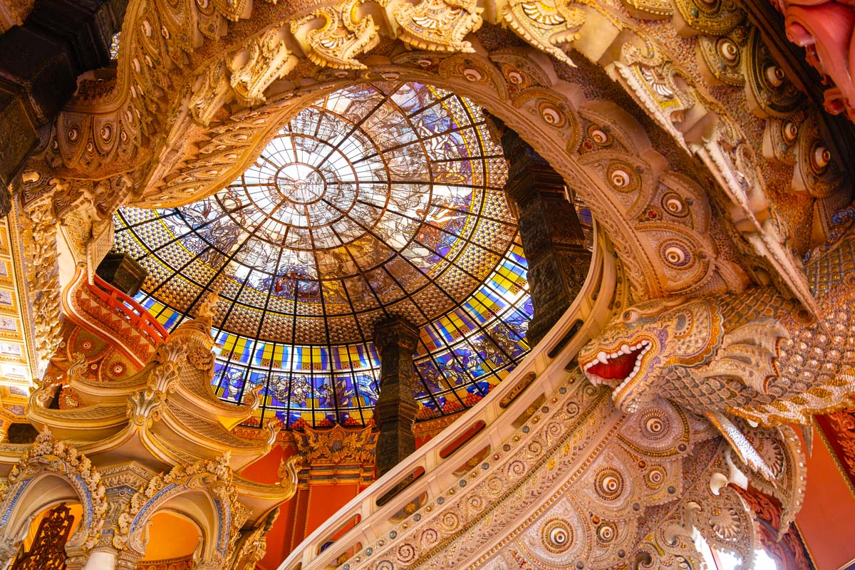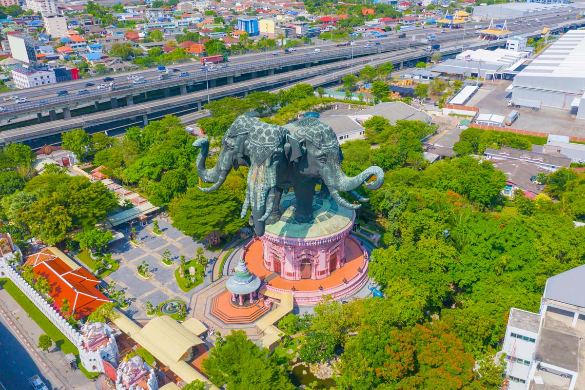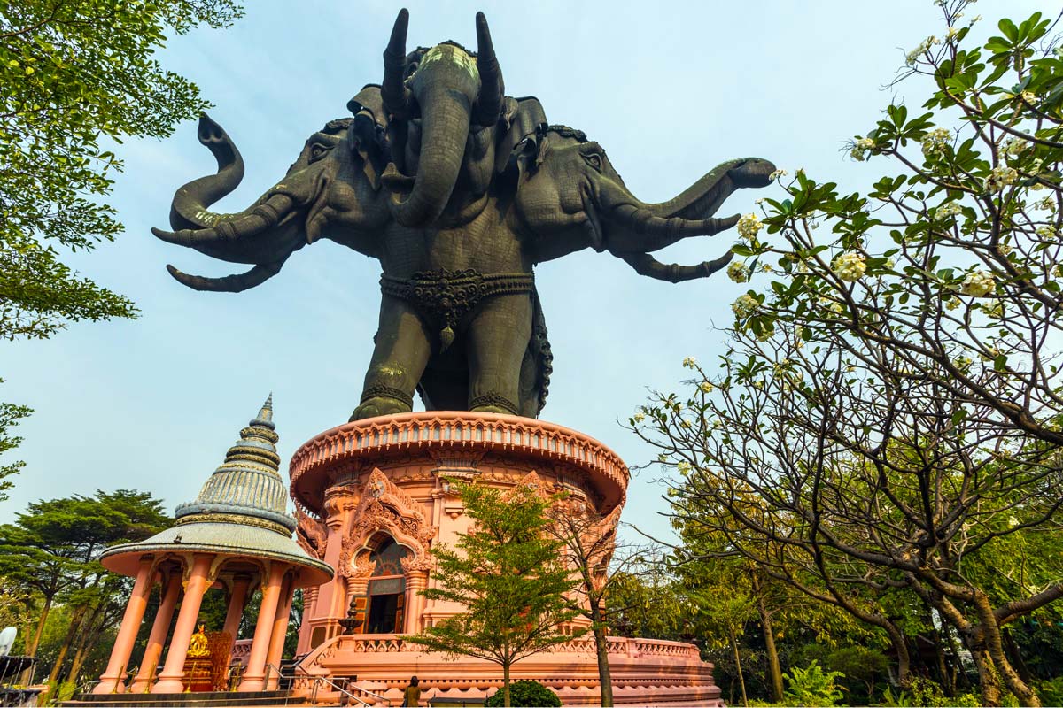 Begin your cultural day trip from Bangkok with a visit to the stunning Erawan Museum, home to the famous three-headed elephant statue. Explore its intricately decorated interior filled with religious art, stained glass, and symbolic staircases that reflect Thai cosmology and craftsmanship.