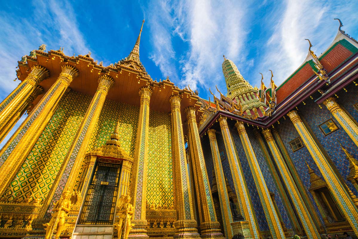 Your journey begins at The Grand Palace in Bangkok, where the magnificent Wat Phra Kaew (Temple of the Emerald Buddha) is located. This historic site dazzles with golden spires, intricate mosaics, and ornate halls that showcase the finest of Thai craftsmanship blended with European influences. As you stroll through the palace grounds, you’ll feel the grandeur of centuries-old royal heritage surrounding you.